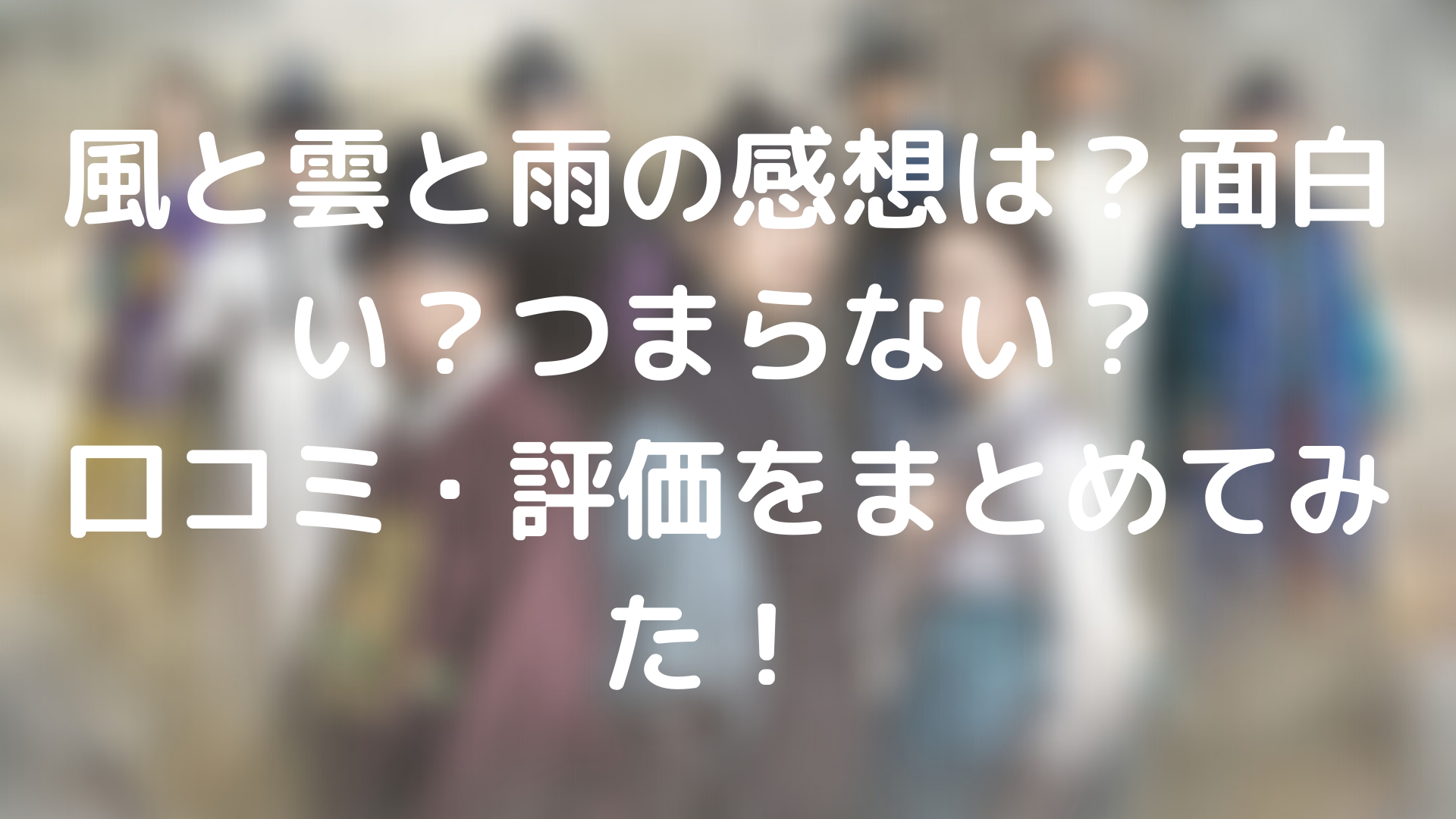 抜群の映像部と実力派キャストによる圧倒的演技が見れる『風と雲と雨』、一度視聴されてみてはいかがでしょうか。