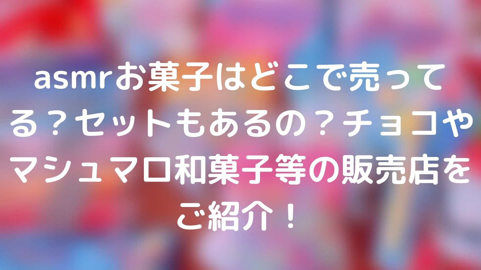 asmrお菓子はどこで売ってる?セットもあるの?チョコやマシュマロ和菓子等の販売店をご紹介!について紹介していきました。