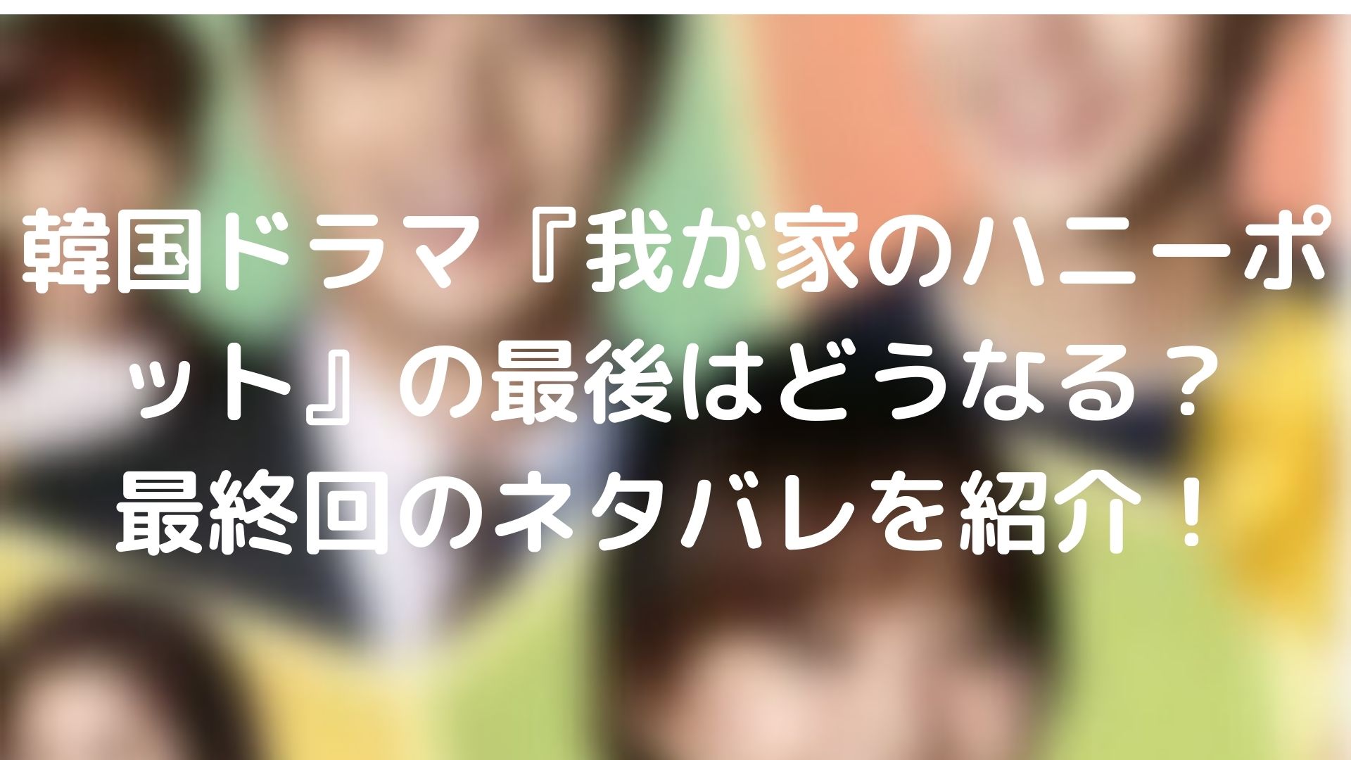 この記事では、韓国ドラマ『我が家のハニーポット』の最後はどうなる?最終回のネタバレを紹介!について紹介していきます。
